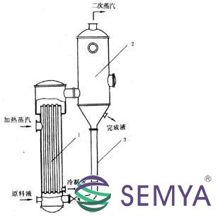 這類蒸發器的特點是溶液在蒸發器內作連續的循環運動,以提高傳熱效果、緩和溶液結垢情況。由于引起循環運動的原因不同,可分為自然循環蒸發器和強制循環蒸發器兩種類型。前者是由于溶液在加熱室不同位置上的受熱程度不同,產生了密度差而引起的循環運動;后者是依靠外加動力迫使溶液沿一個方向作循環流動。