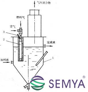 浸沒燃燒蒸發器的結構簡單,不需要固定的傳熱面,熱利用率高,適用于易結垢、易結晶或有腐蝕性溶液的蒸發,但不適于處理不能被燃燒氣污染及熱敏性物料的蒸發。目前廣泛應用于廢酸處理工業。蒸發操作廣泛用于各種工業中,對這類應用量大且面廣的設備,如能作某些改進以提高蒸發強度,則對社會的經濟影響是很顯著的。不論是間接加熱的非膜式還是膜式蒸發器,其主要元件都是加熱管束。所以對蒸發器的加熱管束加以改造,是提高蒸發器傳熱強度的可行途徑。由蒸發器的發展歷程也可以看出,最初采用的是蛇管和橫管蒸發器,后來發展為垂直管蒸發器,再進展為膜式蒸發器。要提高蒸發器的傳熱強度往往用減薄管子兩側液膜或增加膜內湍動程度的方法來實現。